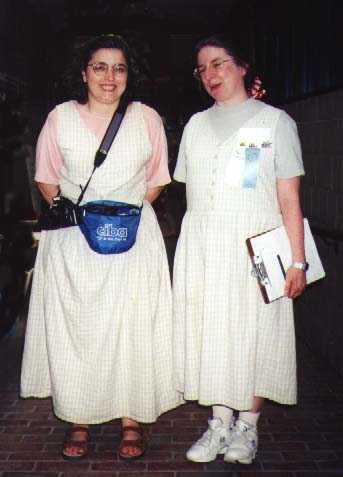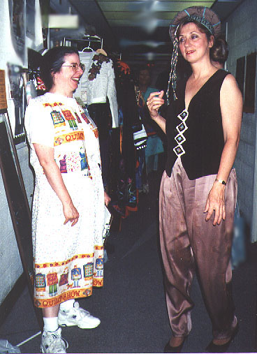 | Is there a dress shoppe for Quilt Show Bureaucrats? Should Pat M-S from Heritage Quilters of the Hudson Palisades have checked to see what MB was planning to wear on Sunday? Is this the uniform du jour for quilt show queens? Are they twins separated at birth. Pat said she was considered a "princess" whereas MB is "the queen." MB said "she's wearing my clothes!" |